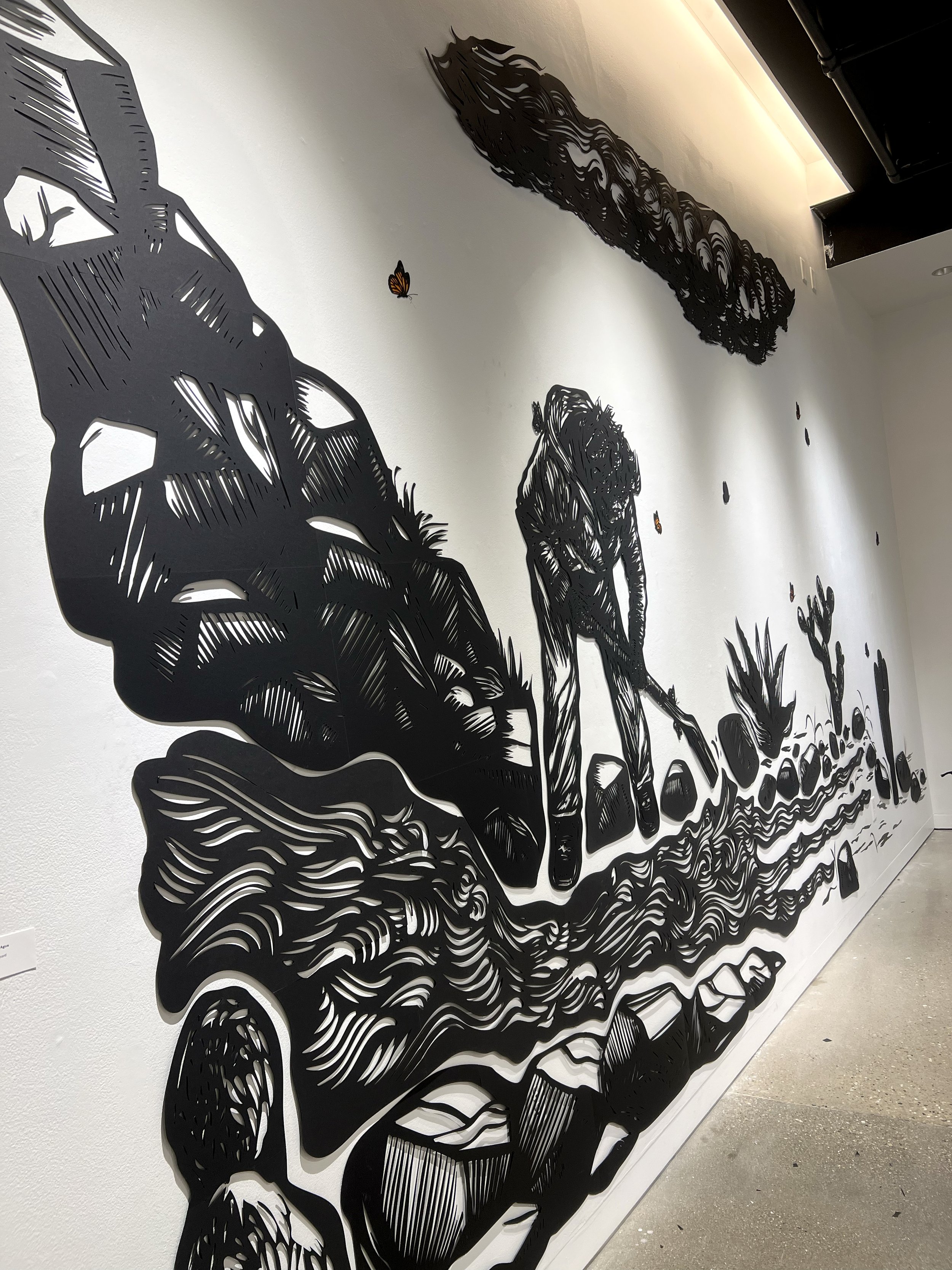 Moviendo Agua installation. Laser-cut matte board. 11 ft x 30 ft. 2026.